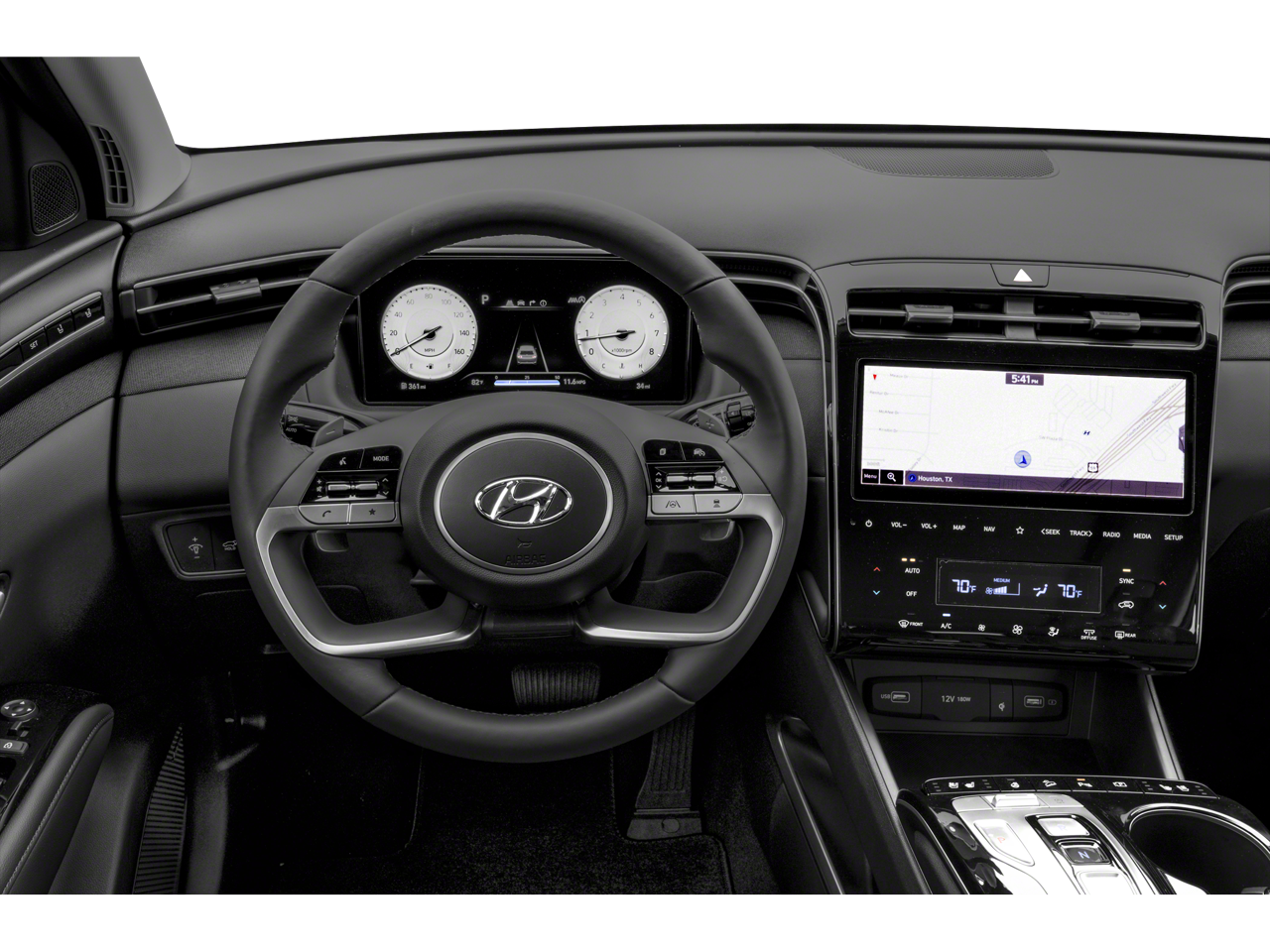 Step inside and you'll be greeted by a spacious and well-appointed cabin, featuring luxurious leather seating, heated and ventilated front seats, and a premium Bose audio system that will elevate your driving experience. The Tucson also boasts advanced technology, including a state-of-the-art navigation system, Apple CarPlay, and Android Auto, keeping you connected and in control.