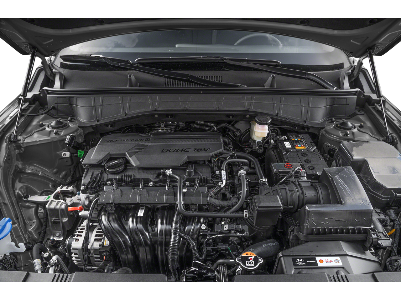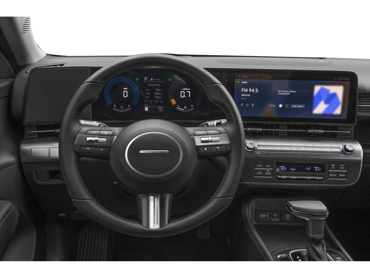 - 6 Speakers, AM/FM radio: SiriusXM, Radio: AM/FM/HD Radio/SiriusXM Audio System, Air Conditioning, Automatic temperature control, Front dual zone A/C, Rear window defroster, Power driver seat, Power steering, Power windows, Remote keyless entry, Steering wheel mounted audio controls, Speed-sensing steering, Traction control, 4-Wheel Disc Brakes, ABS brakes, Dual front impact airbags, Dual front side impact airbags, Emergency communication system: Bluelink+, Front anti-roll bar, Front wheel independent suspension, Low tire pressure warning, Occupant sensing airbag, Overhead airbag, Brake assist, Electronic Stability Control, Exterior Parking Camera Rear, Auto High-beam Headlights, Delay-off headlights, Fully automatic headlights, Panic alarm, Security system, Speed control, Bumpers: body-color, Heated door mirrors, Power door mirrors, Spoiler, Turn signal indicator mirrors, Apple CarPlay & Android Auto, Cloth Seat Trim, Driver door bin, Driver vanity mirror, Front reading lights, Illuminated entry, Leather steering wheel, Outside temperature display, Passenger vanity mirror, Rear seat center armrest, Tachometer, Telescoping steering wheel, Tilt steering wheel, Trip computer, Front Bucket Seats, Front Center Armrest, Split folding rear seat, Passenger door bin, Alloy wheels, Wheels: 18 x 7.0J Glossy Black Alloy, Rear window wiper, Variably intermittent wipers